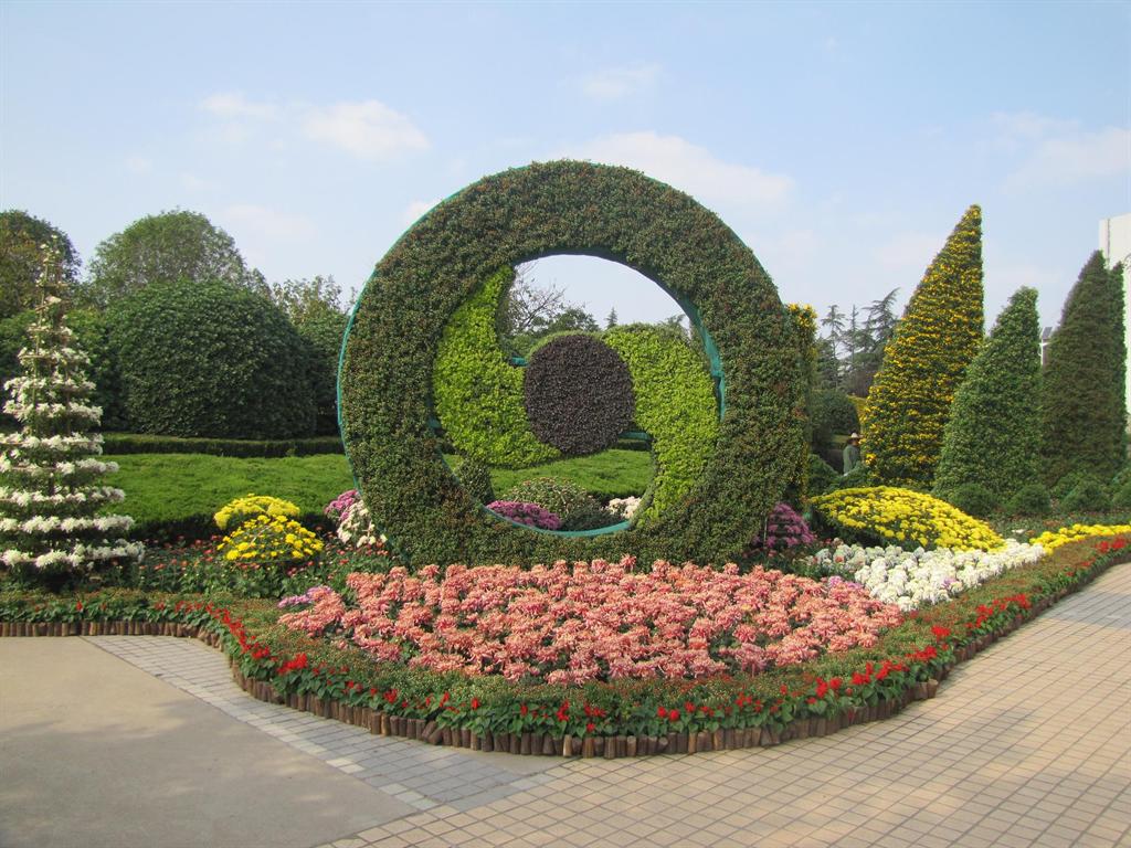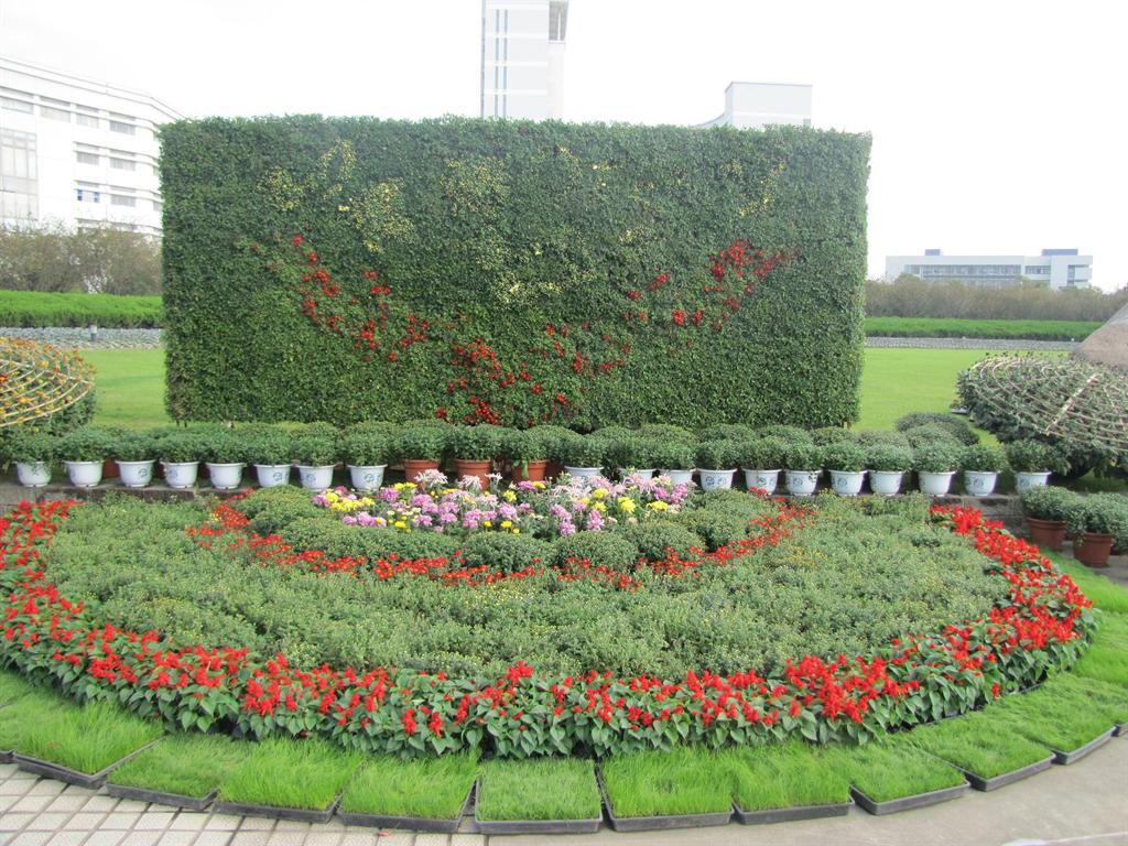 5、同心共筑 位置:DJ楼之间 景点用红、白、黄小菊,绿色草和一串红等分别勾画出祥云、中国地图和“中国梦”图案,其中祥云象征着吉祥昌盛的美好愿望。景点前点缀的小花代表着我们13亿人民,也象征着我们13亿人民各自的梦想。整个景点用菊共计2000余盆,象征神州大地的13亿人民众志成城、同心共筑祖国更美好和谐的“中国梦”。