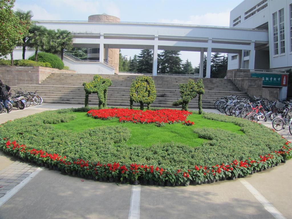 10、岁月如歌 方位:图书馆左前方 由小红菊镶嵌而成一个直径为3米的红日,白石子铺就一片宁静的水面,水面上浮一小舟,小舟周围用菊花点缀。外围用菊花色块组成线条型的岸线。景点寓意,在漫漫的岁月长河中,有喧嚣也有宁静,但人们不停地思索,文化不断地积淀。景点营造出一片如诗如歌的意境。