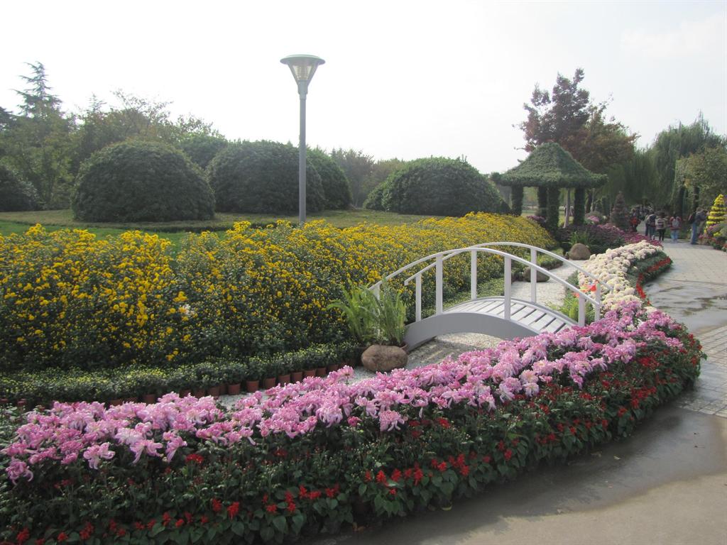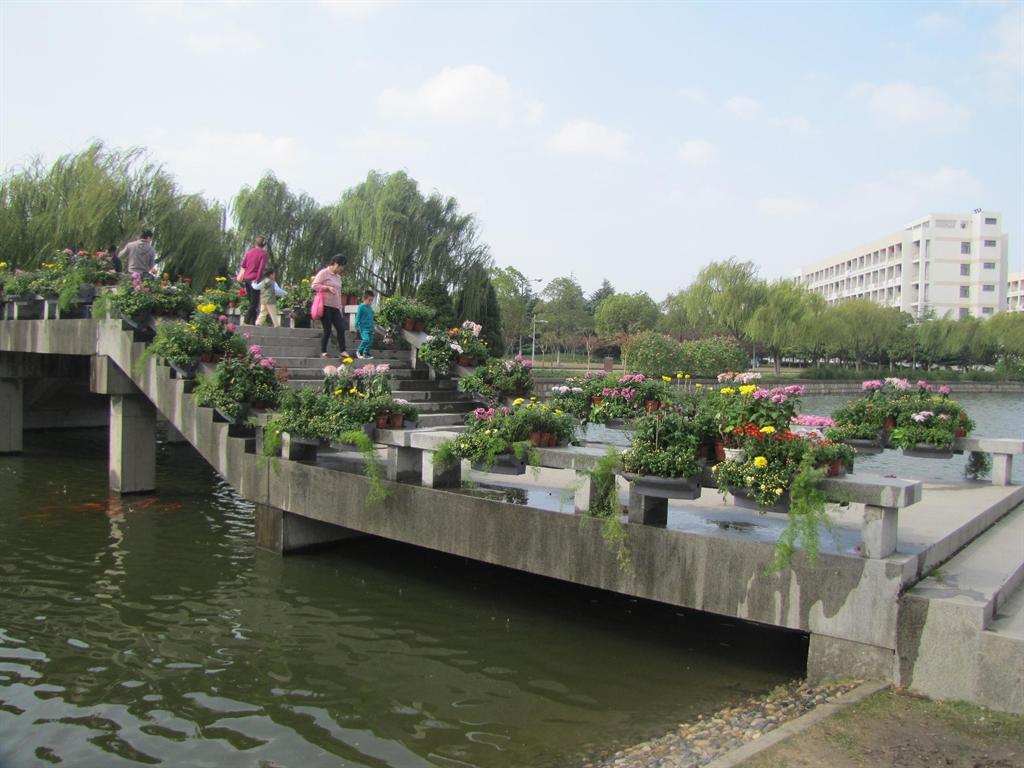 14、泮桥菊色 位置:泮桥上 景点以花槽装饰桥栏,以塔菊、大立菊等布置在泮桥的路口两端。在秋日的阳光下,花开烂漫,菊色缤纷,寓意着我们新上大的建设在全校师生的共同努力下将更加美好和谐。