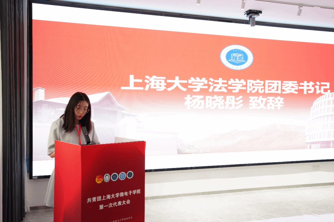 法学院团委书记杨晓彤老师代表法学院团委对微电子学院团代会的召开表示热烈祝贺。希望微电子学院团委发挥桥梁纽带作用,动员团结全院学生,推动党的创新理论入脑入心,期待两个学院加强合作,在科技创新、社会服务等领域搭建平台,引导团员青年锤炼专业本领,展现担当作为。
